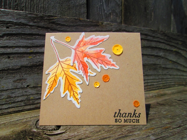 I was inspired by Dawn McVey's colourful leaf card...